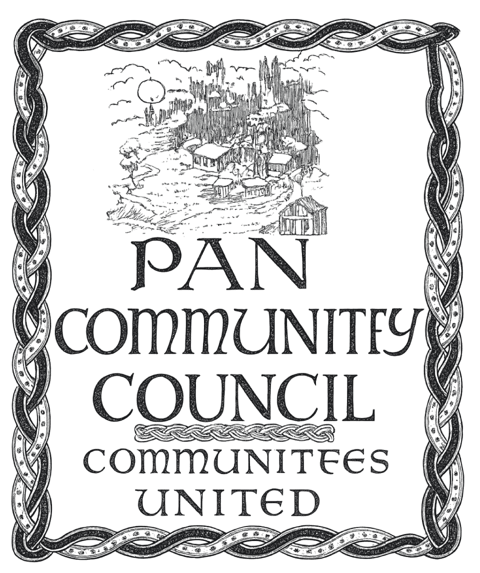 Pan Community Council (Pan Com) was formed in 1987 with the primary aim of promoting social interaction between communities; assisting in dealings with councils and government bodies; fostering sustainable economic initiatives; and protecting the environment.